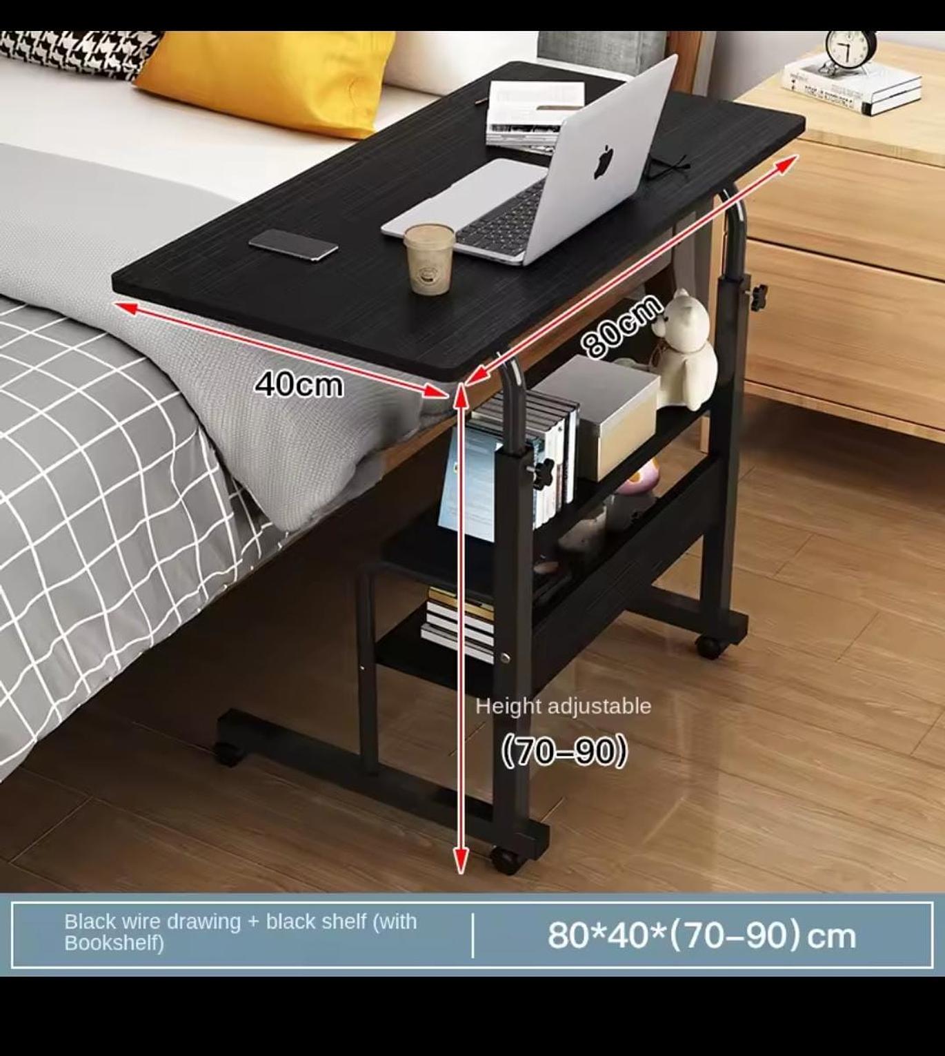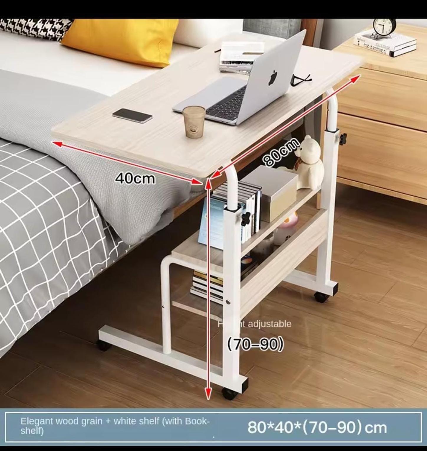 Heavy-duty laptop table with wheels. Adjustable height, strong frame (up to 50KG load) and extra storage shelf.