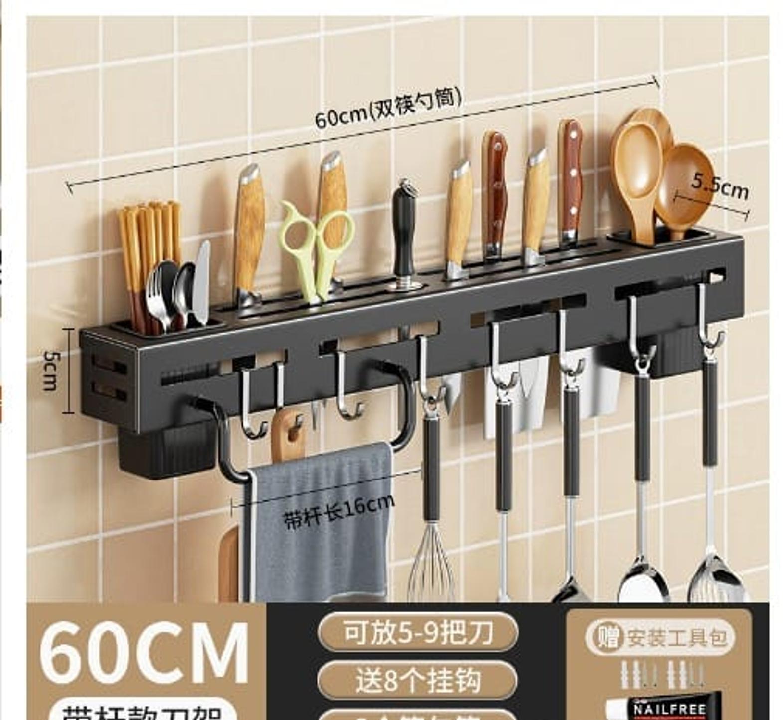 Wall-mounted kitchen knife and chopstick storage rack. Punch-free, space-saving and durable.