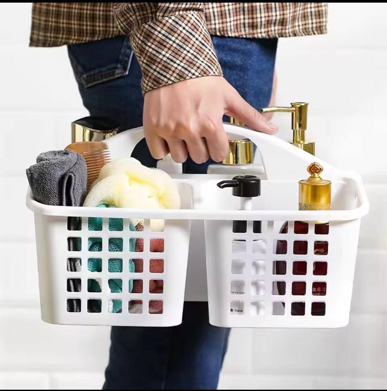 Multipurpose bathroom and housekeeping caddy for easy carrying and organized storage.