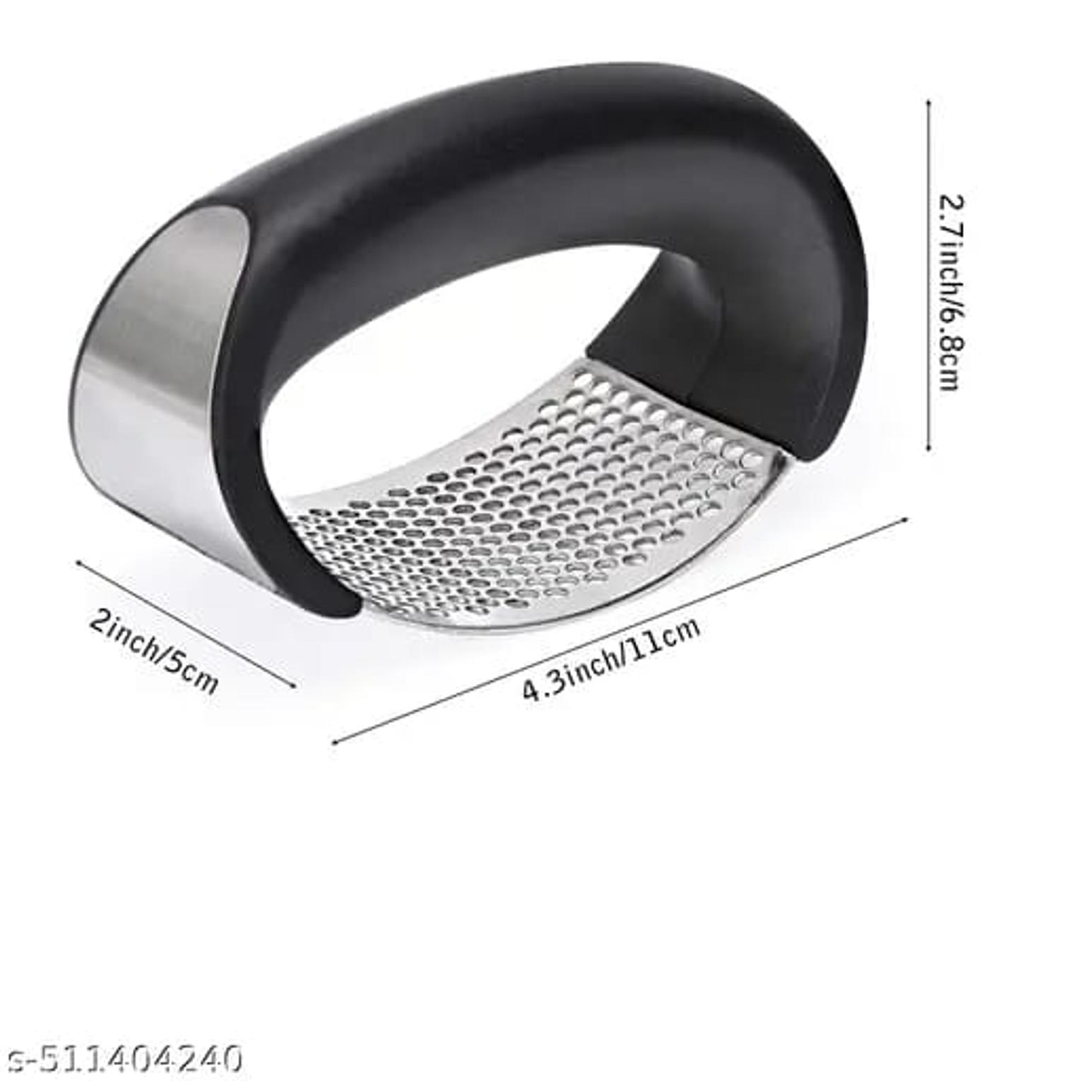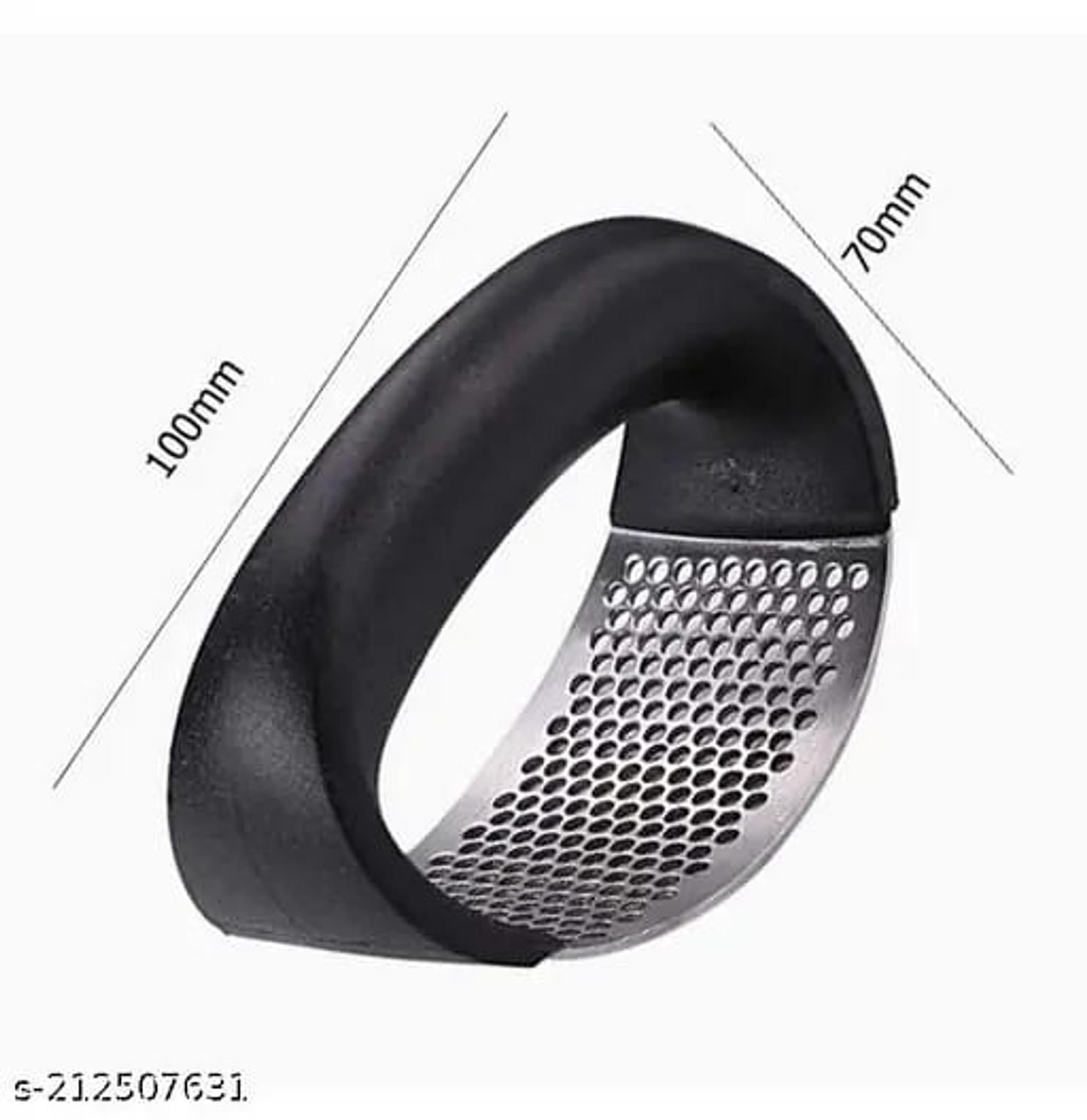 Handheld ring-style garlic crusher for effortless crushing of garlic without mess.