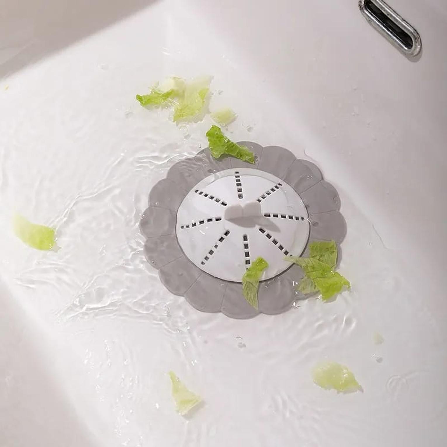 Durable silicone drain strainer that traps hair, food particles and debris to prevent clogging.