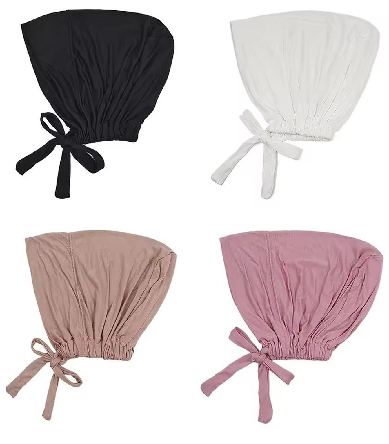 The soft modal Muslim turban hat is a comfortable, lightweight inner hijab cap designed to provide secure coverage and a smooth base for headscarves.