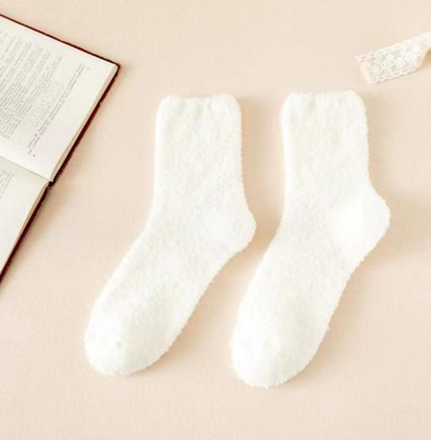 These thickened fleece coral socks are warm, mid-calf sleepwear socks for women, designed to provide comfort and cozy insulation during winter.